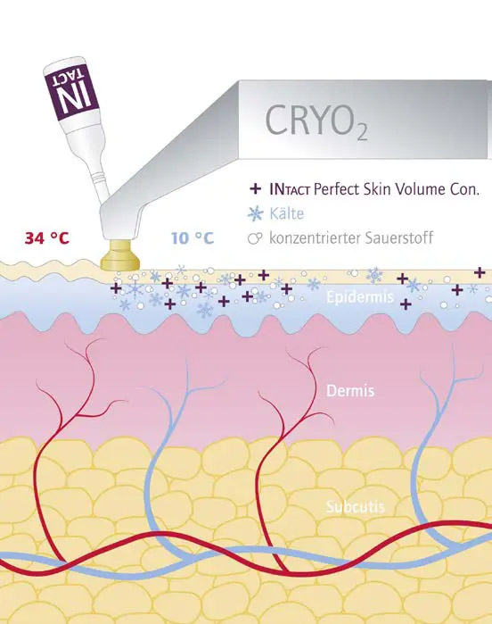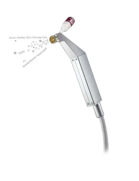 The NORA BODE OXYJET safe oxygen pressure injection system is used to inject special cosmetic preparations directly into the target areas of the skin. The skin is entered through natural spaces in the epidermal cells (the organic matrix) and preparations are deposited in deeper layers of skin where they have desired effect.