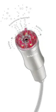 Pure concentrated oxygen, the specially formed applicator for arms and legs, and Bio Blue/ Red Light help improve the lymphatic flow – allowing smoother skin appearance.